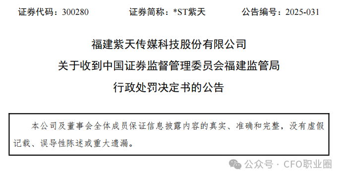 福建紫天传媒科技股份有限公司(以下简称“公司”或“紫天科技”)及公司董事长兼董事会秘书宋庆、总经理李琳、财务总监LIXIANG(中文名李想,以下称李想)、实际履行公司负责人相当职务人员姚小欣,于2025年6月27日分别收到中国证券监督管理委员会福建监管局(以下简称“福建证监局”)出具的《行政处罚决定书》(编号:〔2025〕3号、〔2025〕4号、〔2025〕5号、〔2025〕6号、〔2025〕7号)(以下简称“《决定书》”),现将相关事项公告如下: